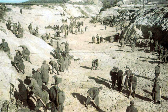 военнопленные лишь прикапывают и разравнивают дно оврага. Если